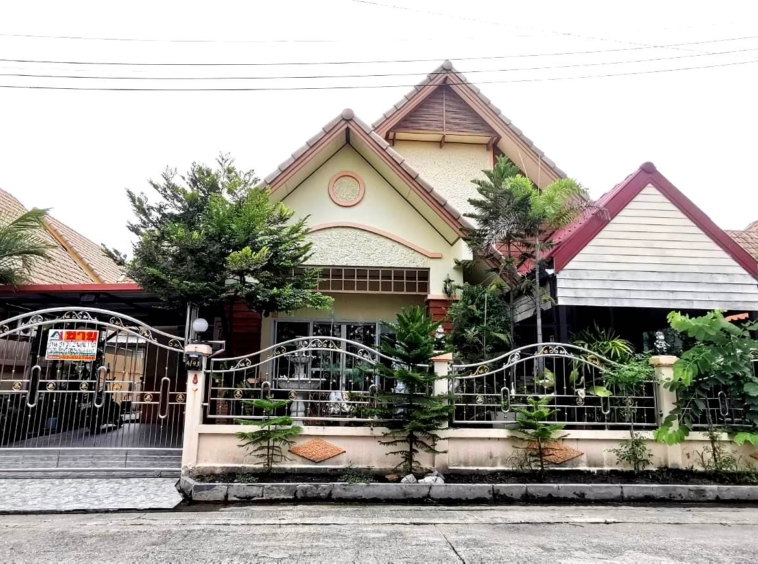ขายบ้านเดี่ยว ชั้นเดียว 51 ตร.ว. มี 3 ห้องนอน 1 ห้องน้ำ 1 ห้องครัว แถมแอร์ 2 ตัว พื้นที่ใช้สอย 110 ตร.ม. สภาพดี พร้อมอยู่ ภายในโครงการมีเจ้าหน้าที่รักษาความปลอดภัยตลอด 24 ชม. ภายในหมู่บ้านมีสนามเด็กเล่น